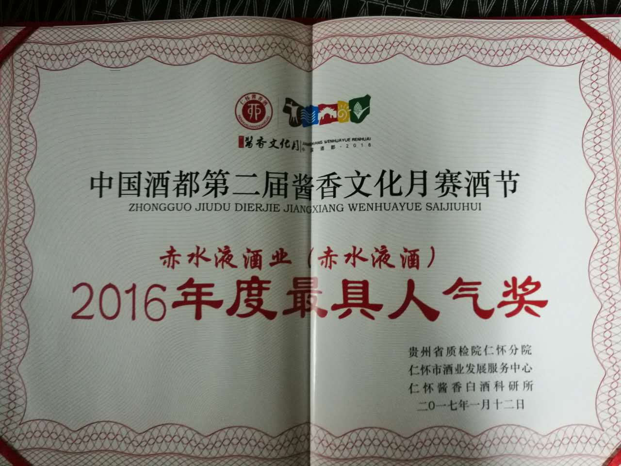 2016年——中國酒都第二屆醬香文化月賽酒節(jié) 年度最具人氣獎