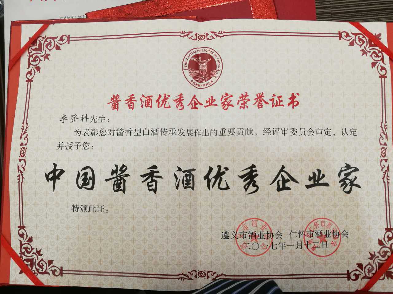 2017年——中國醬香酒優(yōu)秀企業(yè)家