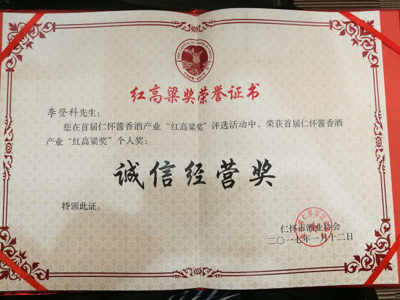 2017年——中國酒業(yè)協(xié)會證書